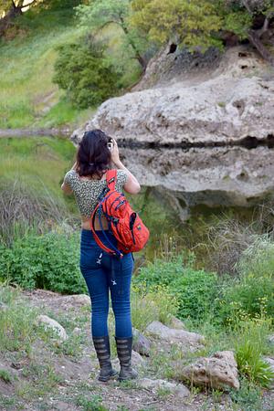A beautiful scene of a woman photographing a river at the Santa Monica Mountains